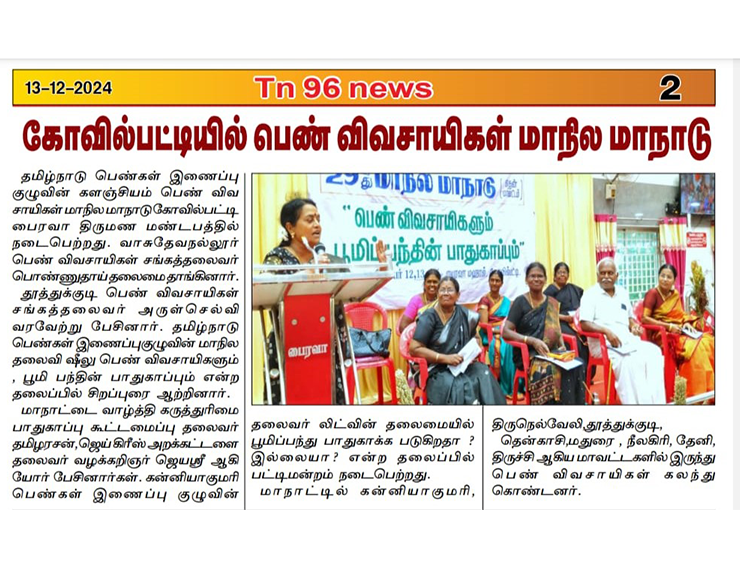 29th Women Farmer Conference Bhairava Mahal Kovilpatti, பெண் விவசாயிகளும் பூமி பந்தின் பாதுகாப்பும்